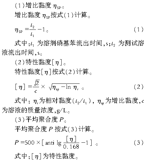 测定结束,自动黏度仪工作站软件根据计算公式自动报出样品平均聚合度P。