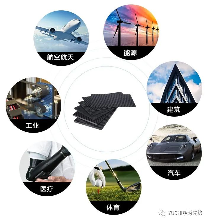 碳纤维是一种含碳量在95%以上的纤维材料,主要元素就是碳。与树脂等基质混合后可制成碳纤维复合材料,由于其质量轻、强度刚度高、可塑性强等优点,被广泛的应用于国防工业领域,是军用飞机、无人机、军用箱体、火箭、导弹、卫星、舰船等先进装备不可缺少的战略性材料。在风力发电、体育休闲、交通运输、汽车工业、能源、化工、建筑等民用领域也有着广泛的应用。