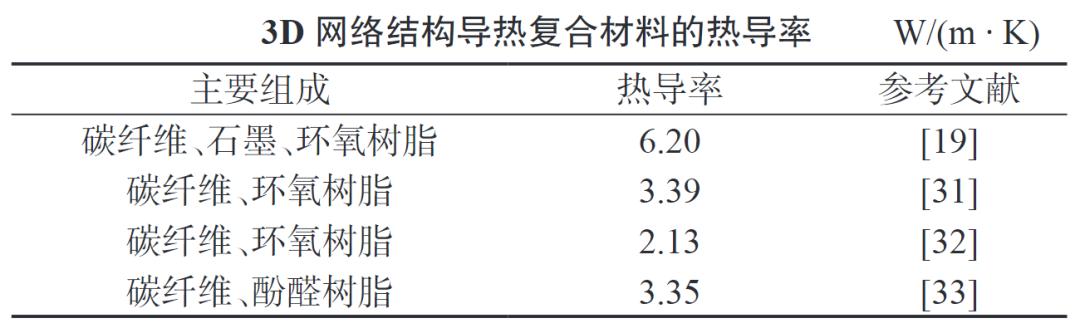 表 4 气流成网 - 针刺成毡法制备的几种碳纤维 3D 网络结构导热复合材料的热导率