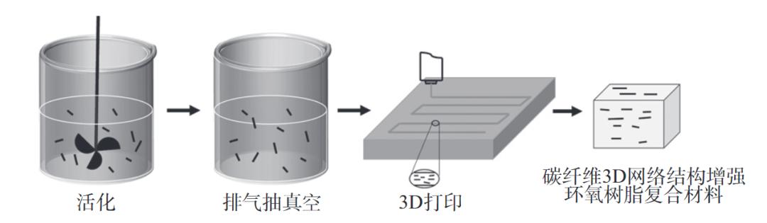 图 5 3D 打印法碳纤维 3D 网络结构增强 环氧树脂导热复合材料示意图