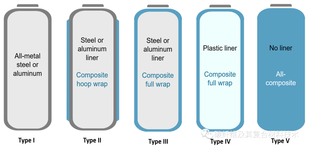 III型容器采用了金属内衬并全包裹了复合材料,可起到氢渗透屏障的作用。金属衬里通常为铝(Al)结构,可消除脆化并提供超过5%的机械阻力。III型容器更适合车辆应用,但是它们价格更高。III型容器在高达450 bar的压力下被证明是可靠的,但是,超过700巴的压力循环测试仍然存在问题。
