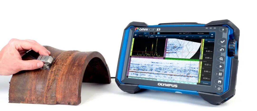 【内容:范围、引用文件、术语和计量单位、概述、校准条件、校准项目和方法、校准结果表达、复校时间间隔】 1、范围 本规范规定了具有 B 型显示功能的相控阵超声探伤仪的计量特性、校准条件和校准方法。适用于相控阵超声探伤仪 B 型显示模式下的计量特性的校准。 ▲奥林巴斯Omniscan SX相控阵探伤仪 2、引用文件 本规范引用下列文件: JJG 746—2004 超声探伤仪 JJF 1001—2011 通用计量术语及定义 JJF 1034—2005 声学计量名词术语及定义 GB 3102.7—1993 声学的量和单位 GB/T 3947—1996 声学名词术语 GB/T 12604.1—2005 无损检测 术语 超声检测 JB10062—1999 超声探伤用探头性能测试方法 ASTM E 2491-06 相控阵超声检测仪器及系统性能评价标准导则 * 凡是注日期的引用文件,仅注日期的版本适用于本规则;凡是不注日期的引用文件,其最新版本(包括所有的修改单)适用于本规则。 3、术语和计量单位 本规范采用GB3102.7—1993规定的量和单位。 本规范采用JJF 1001—2011、JJF 1034—2005、GB/T 12604.1—2005 中界定的和以下术语及定义。 3.1 B 型显示 B mode display 一种能够显示被检件的横截面图像,指示反射体的大致尺寸及其相对位置的超声信 息显示方法。 ▲常规超声B扫描 上面显示的B扫描表明对应于试块中横通孔(SDH)位置的两个较深的反射体和一个较浅的反射体。 在线性扫查中,所有聚焦法则以一个固定角度对各个孔径序列进行脉冲触发。而扇形扫查则是使用固定孔径,以一系列变换的角度发射脉冲,通过电子方式使声束偏转。 3.2 成像横向分辨力 lateral imaging resolution 成像系统在与声束轴线垂直的方向的分辨力。 3.3 成像纵向分辨力 axial imaging resolution 成像系统在声束轴线方向的分辨力。 ▲奥林巴斯Omniscan X3相控阵探伤仪 4、概述 相控阵超声探伤仪一般由主机和探头(又称为换能器阵列)组成。探头一般是由若干压电阵元组成的阵列。相控阵超声探伤仪通过主机独立控制探头中的各个阵元,实现探头声束的相控发射与接收,在介质指定空间区域内实现超声波的偏转和聚焦。 常用探头分为直探头与斜探头,此外还有与探头配套使用的各种楔块等。 超声探伤时,缺陷的位置L 由公式(1)确定。 L=α (1)式中: c——声速, m/s; t—— 传播时间, s。 5、计量特性 5.1 扇扫成像横向分辨力 扇扫成像横向分辨力一般不大于2mm。 5.2 扇扫成像纵向分辨力 扇扫成像纵向分辨力一般不大于2mm。 ▲-30°到 +30°范围内的扇形扫描 * 以上图示扫描是使用零度界面楔块,生成一个扇形图像,以显示分层缺陷和稍微偏斜的缺陷 。 ▲+35°到+70°范围内的扇形扫描 * 上图使用楔块增加入射声束的角度,以生成横波。最常见的折射角度范围在 30 到 70 度之间。这种技术与常规角度声束检测相似,不同的是声束以一系列不同的角度扫射,而不是以通过楔块形成的单一固定角度传播。其图像显示与线性扇形扫查图像相同,也是被测工件的检测区域的横截面图。 5.3 短缺陷分辨力 短缺陷分辨力一般不大于5mm。 5.4 成像横向几何尺寸测量误差 人工缺陷成像的横向几何尺寸测量误差一般不超过±5%。 5.5 成像纵向几何尺寸测量误差 人工缺陷成像的纵向几何尺寸测量误差一般不超过士5%。 5.6 扇扫角度范围测量误差 通过对人工缺陷的扇形扫查成像,确定扫查角度范围,测量误差一般不超过±3°。 5.7 扇扫角度分辨力 角度分辨力一般不大于2.5°。